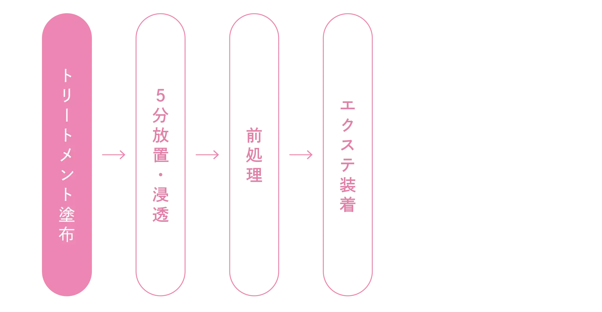 →事前にまつげに栄養補給することで、不均一な状態のまつげが整えられ1剤が均一に浸透し、かかりムラを防ぎます。また1剤による毛のタンパク質の流出を抑えます