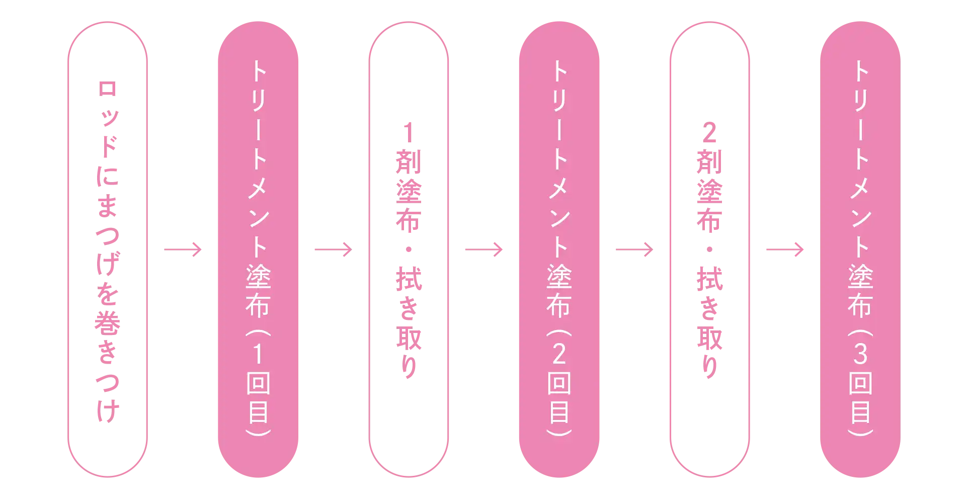 - (3)2剤をふき取った後(ロットを取り外す前)に、綿棒にトリートメントを含ませ塗布します。