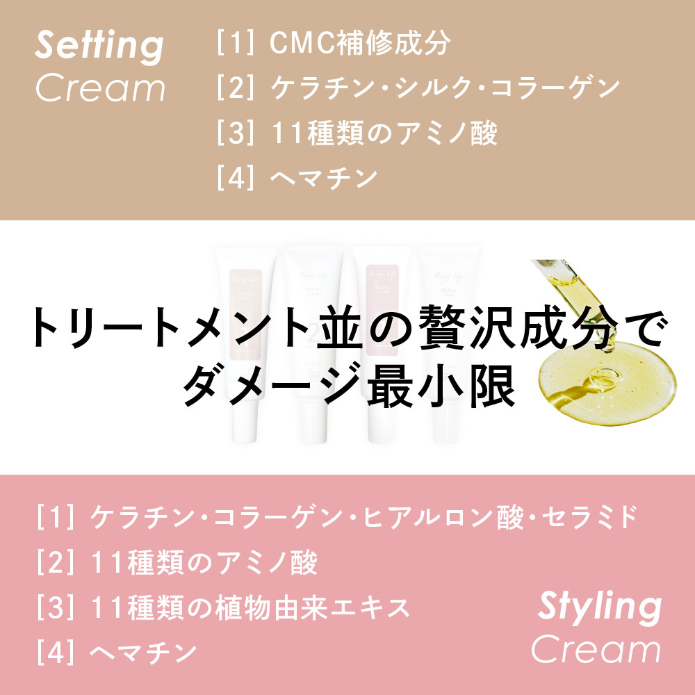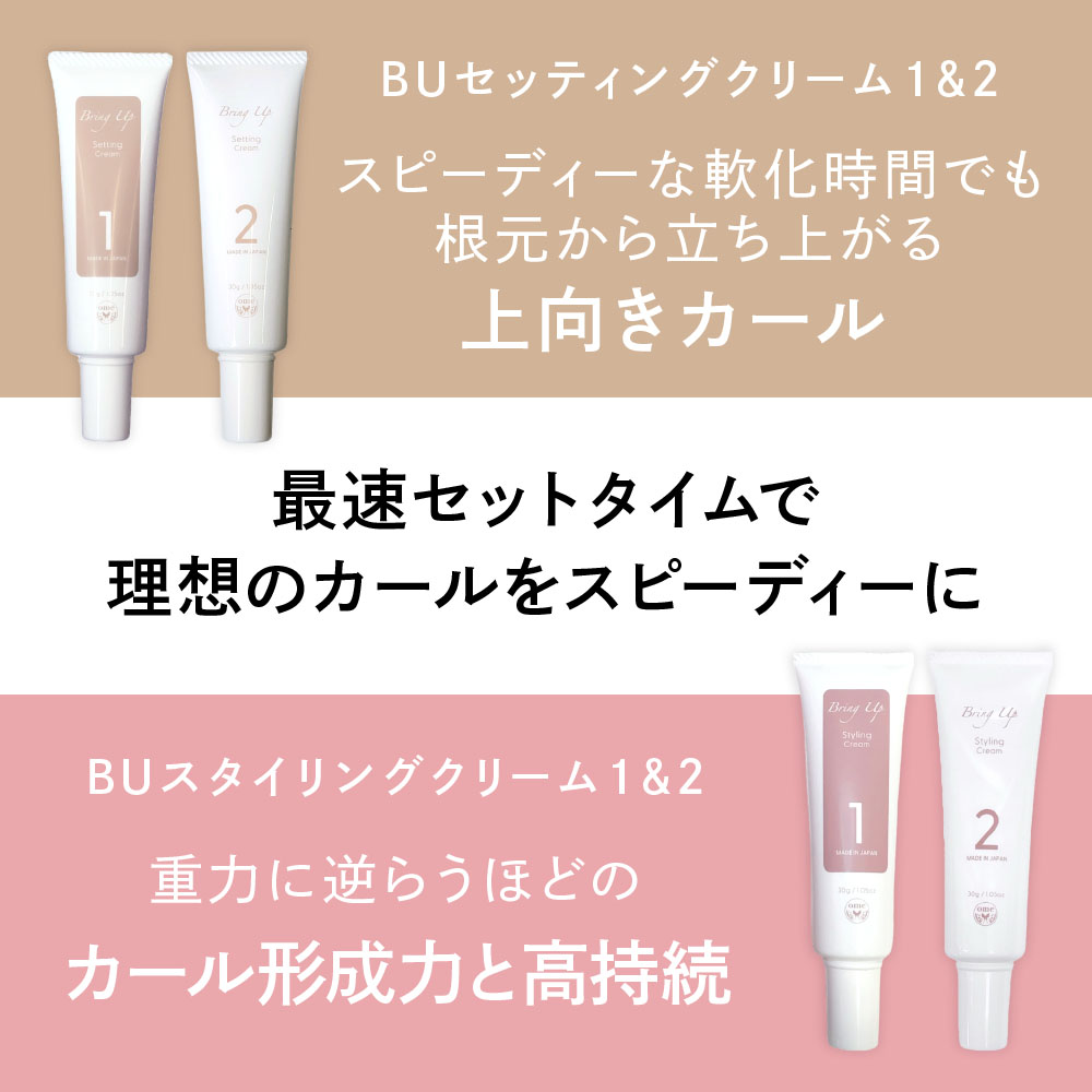 | 成分 | 各商品ページにてご確認ください。 BUセッティングクリーム1&2 BUスタイリングクリーム1&2 |